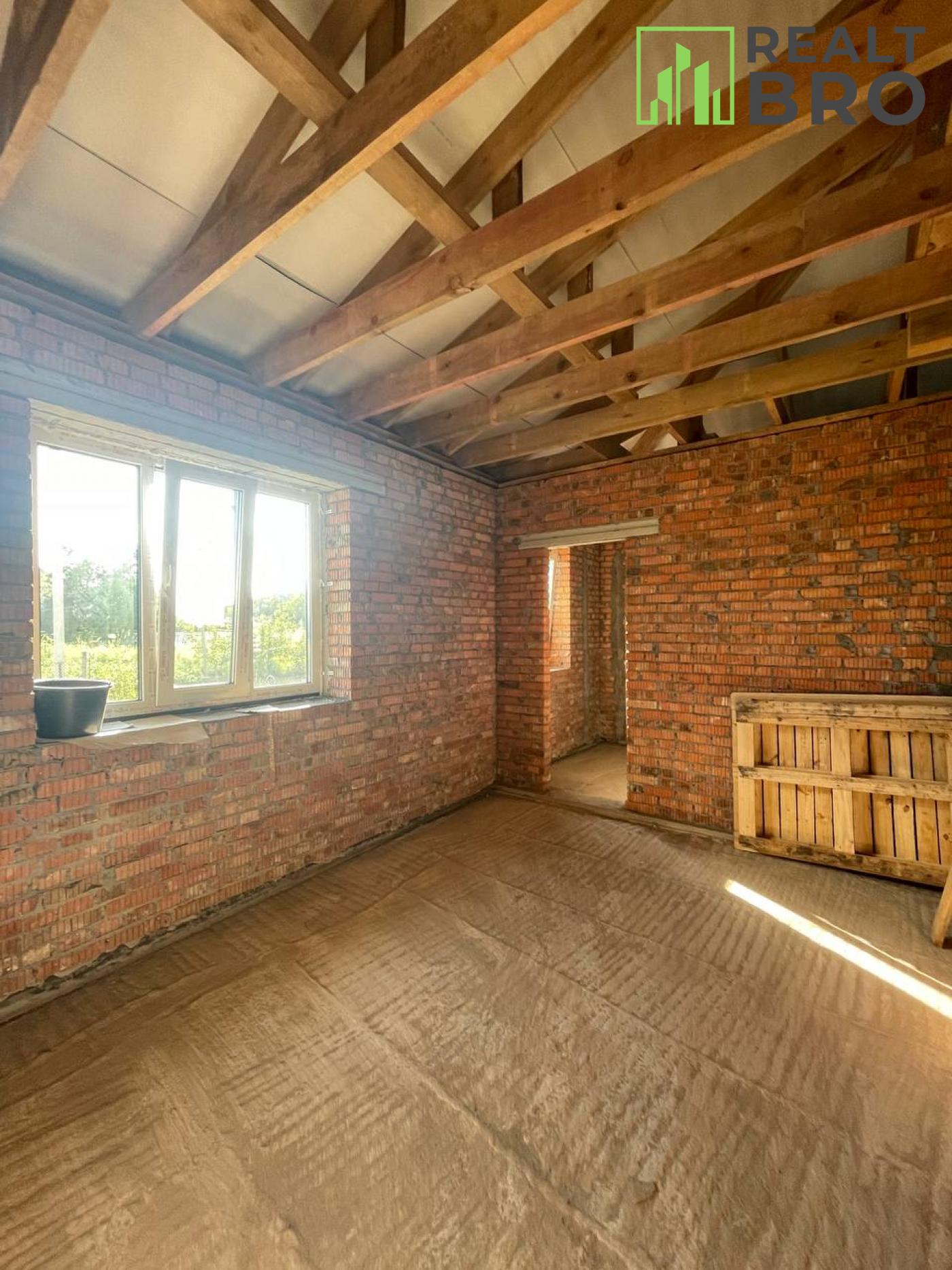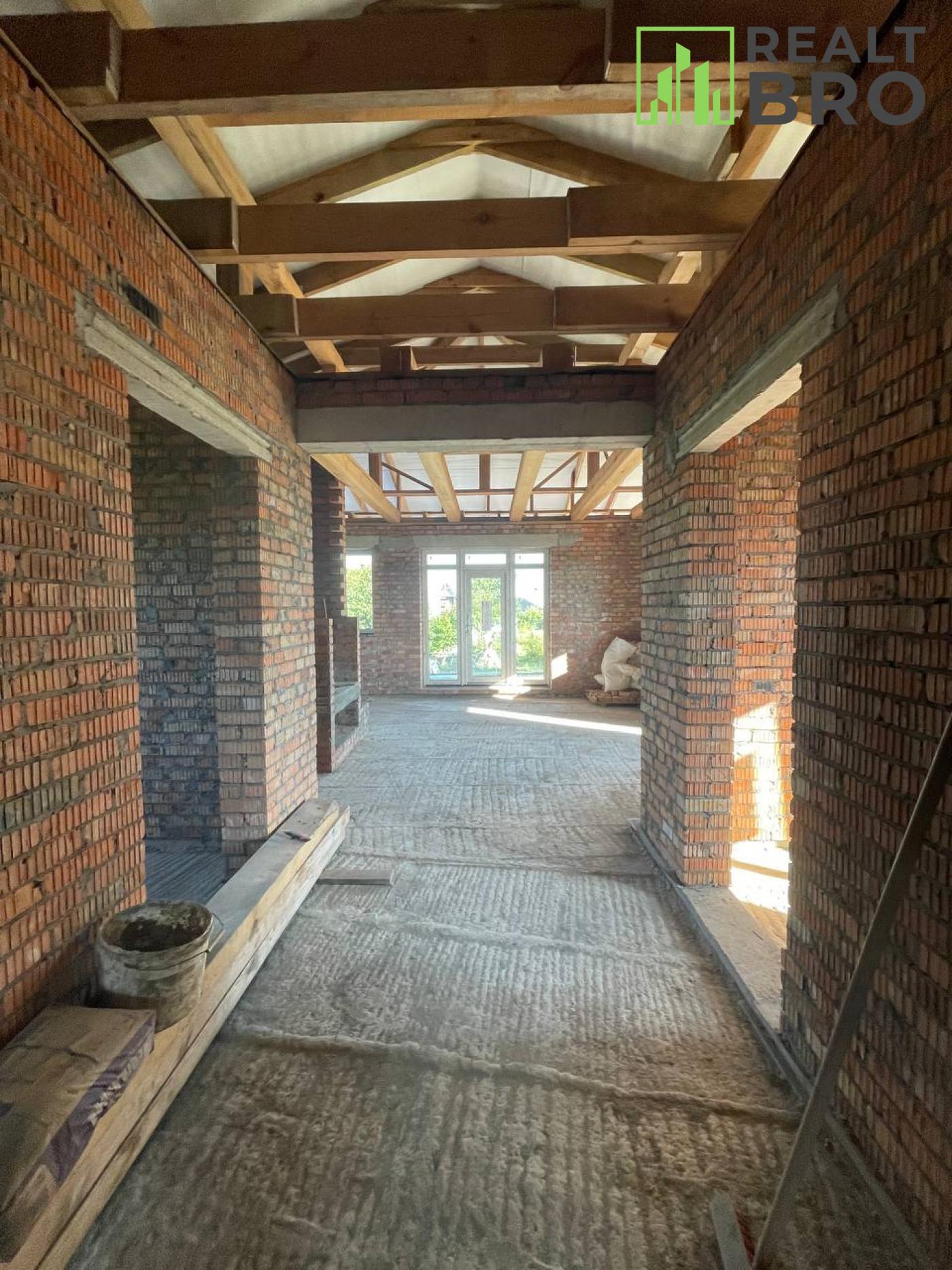 Є плодово ягідний молодий сад, хоз приміщення з погребом. Літній душ, літній туалет. Зроблена розводка води, каналізації, закладені комунікації. Зроблений септик переливний за технологією, підготовлений приямок для скважини. Будинок чекає на власника, всі роботи дійшли до того стану що потребують для подальшого будівництва рішень власника.